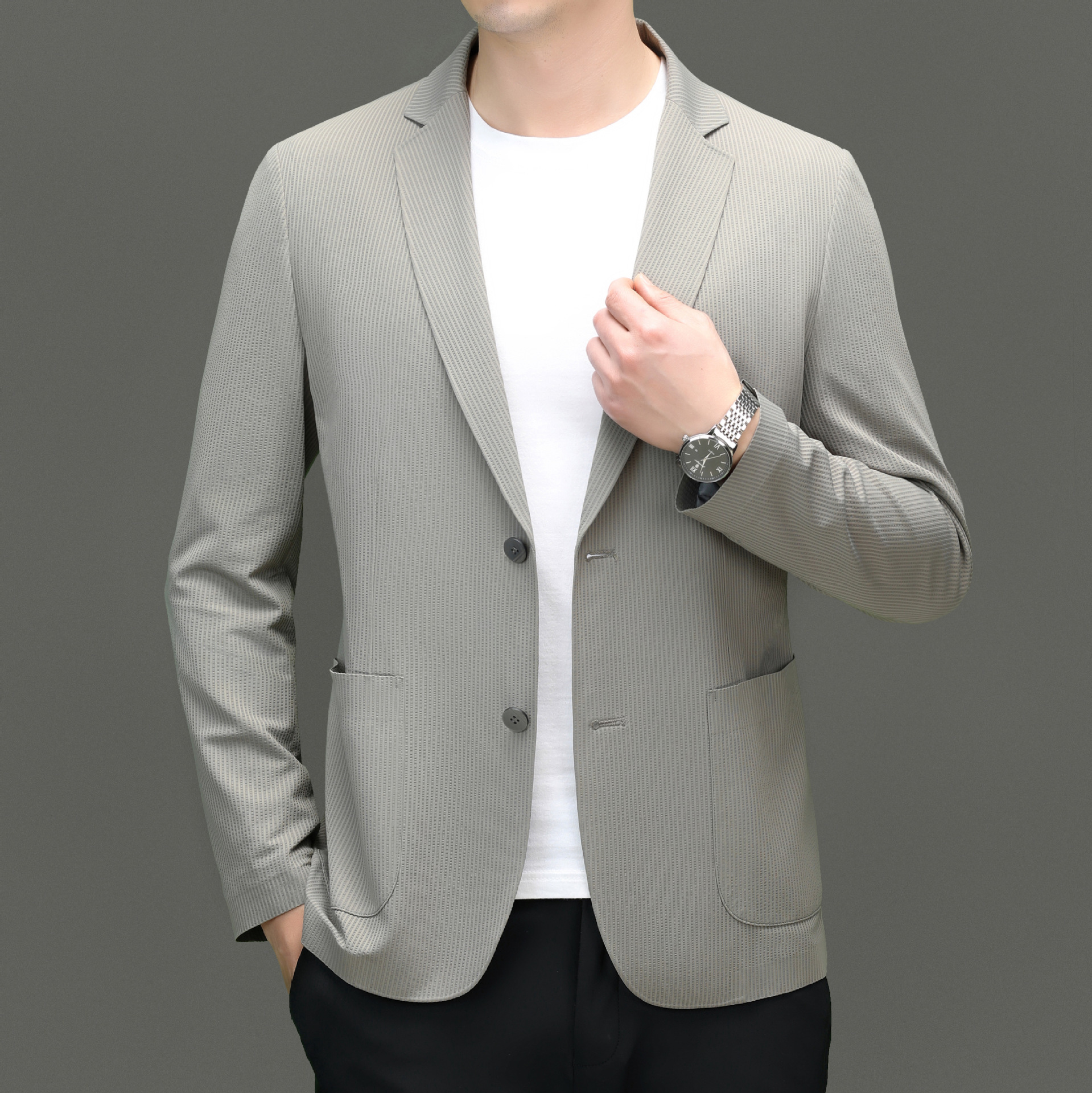 2025年メンズカジュアルスーツ春秋薄手ノーアイロントレンドストライプシングルスーツ韓国風若者向けスーツジャケット