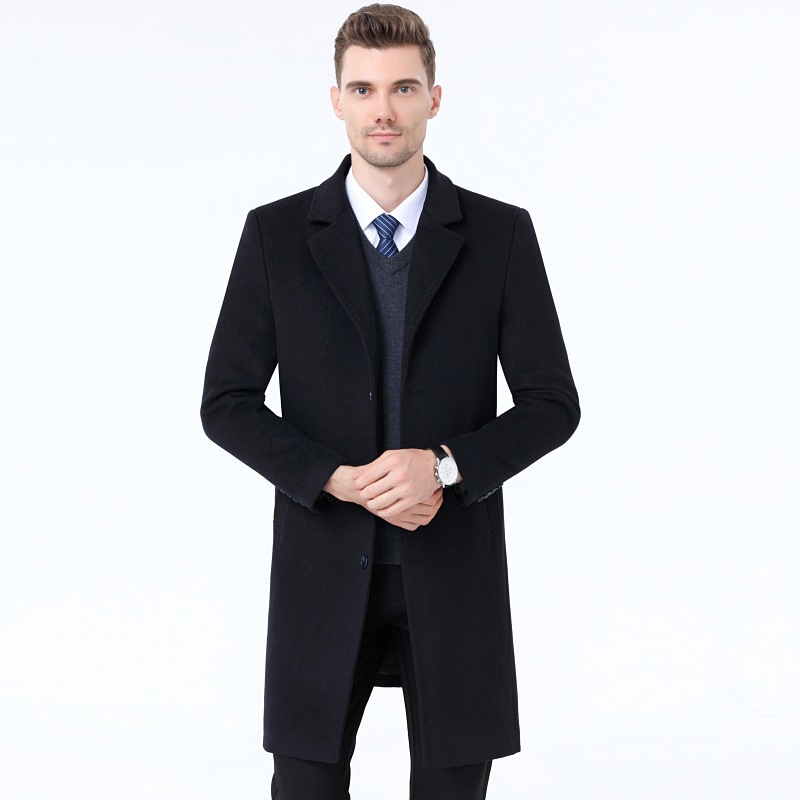 冬のメンズウールウールコート、エクストラロング、中年男性カジュアルスーツカラー、多用途カシミヤウインドブレーカージャケット
