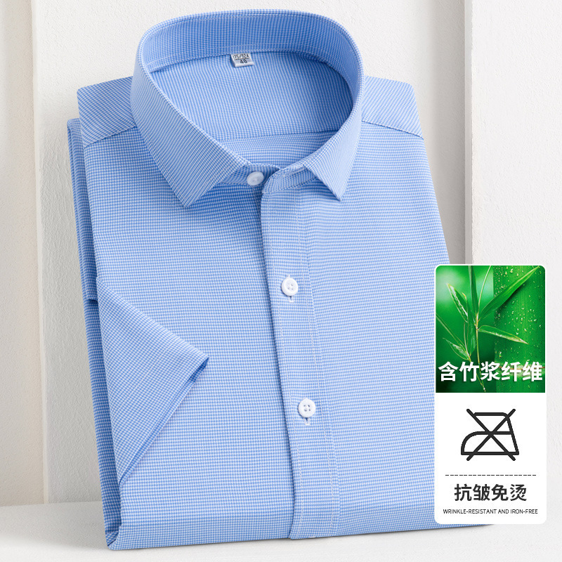 メンズ半袖シャツ夏ビジネスカジュアル薄手千鳥格子シャツ英国トレンドノーアイロンフォーマルシャツ