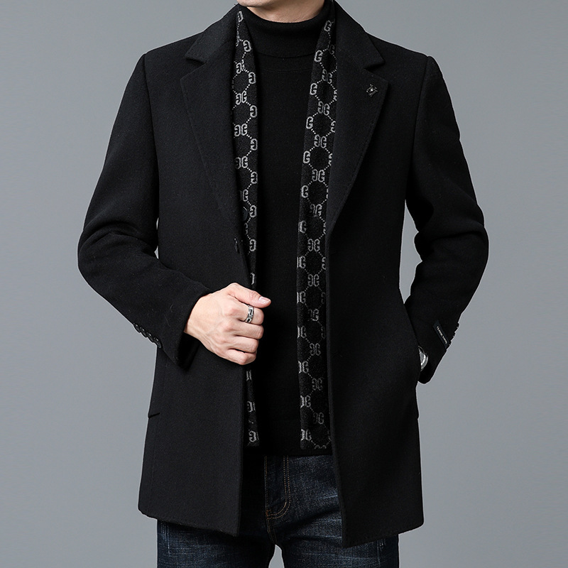 中高年男性向け冬服、両面ウールコート、カジュアルスーツ、ネクタイ、スカーフ、ダウン暖かいカシミヤジャケット