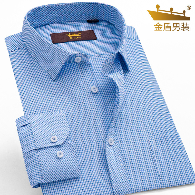 ゴールデンシールドメンズ長袖シャツビジネスアイロン不要プロフェッショナル大きいサイズシャツチェック柄フォーマルカジュアルホワイトカラーシャツトレンディ