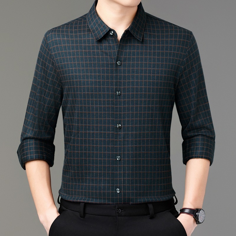 2025 春の新作メンズシャツ長袖ビジネスカジュアルノンアイロン中年男性カシミヤチェック柄シャツ男性用