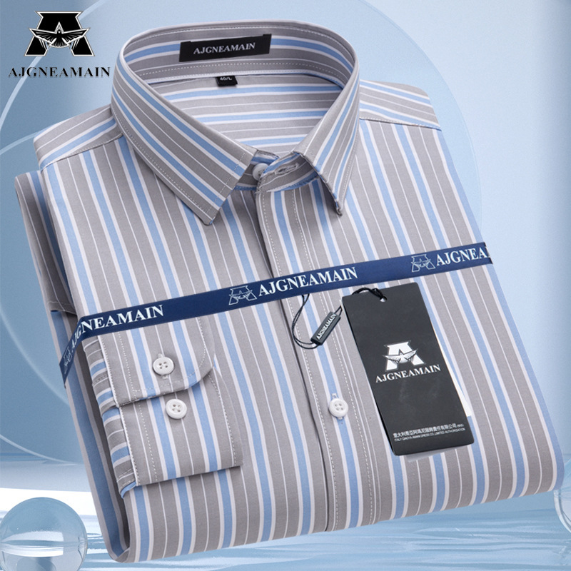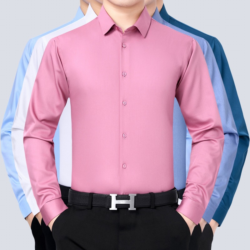 2025 春の新作メンズシャツ長袖ビジネスカジュアルノンアイロン中年男性無地シャツ男性