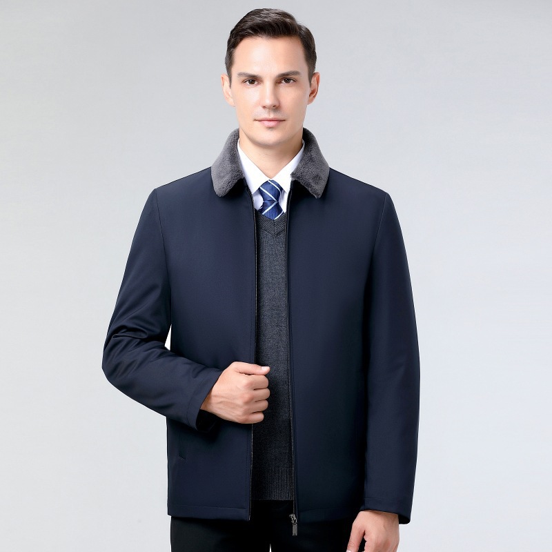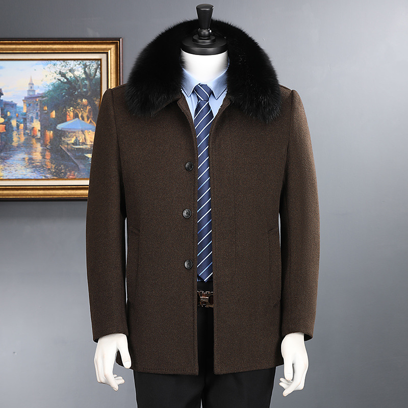 中高年男性カシミヤコートラペルショート冬服暖かいダウンライナーウールウインドブレーカージャケット男性用
