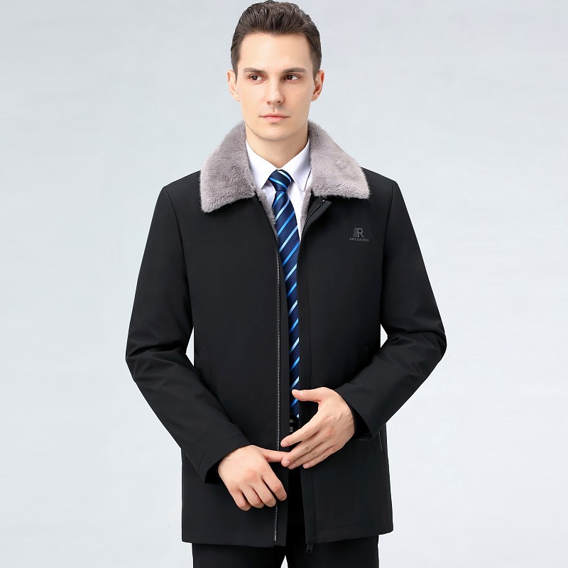 冬服メンズパーカー中年男性シェルミンクライナーファーラペルミドル丈防寒ジャケット男性用