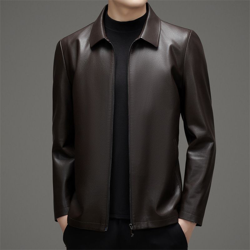 2024 春と秋の新厚いメンズレザージャケット中年ビジネスカジュアルシープスキンジャケットターンダウンカラープラスベルベットジャケット