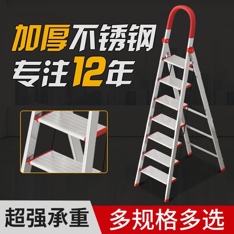 ステンレス鋼の家庭用折りたたみはしご厚みのあるヘリンボーンはしご屋内ポータブル多機能階段6、7、8、9段はしご