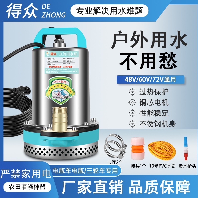 DC 水中ポンプ 48v60v72v ユニバーサル電気自動車電動三輪車プラグインバッテリー車ポンプ農業用
