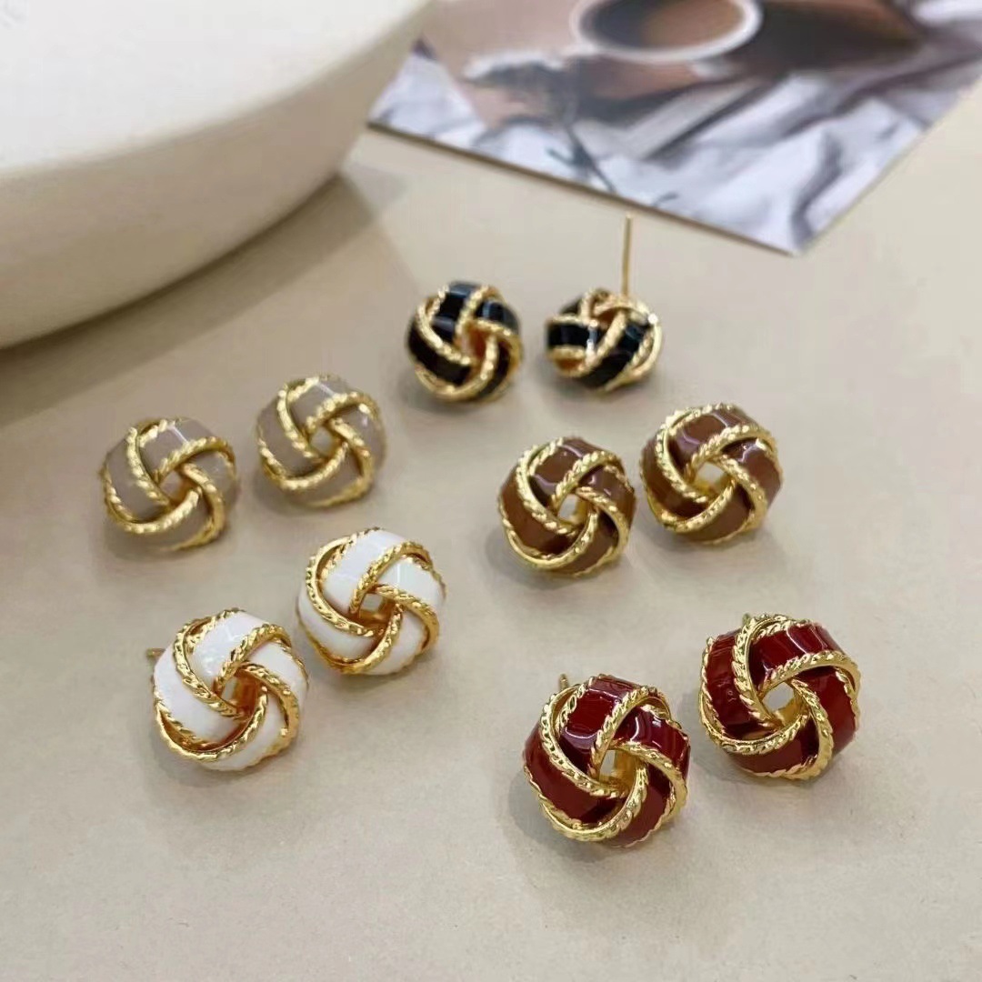 レトロな気質の美ラードの色の釉薬の麻の花のピアスの女性の秋冬の軽くて豪華な高級感のイヤリングの大衆は耳飾りを設計します。