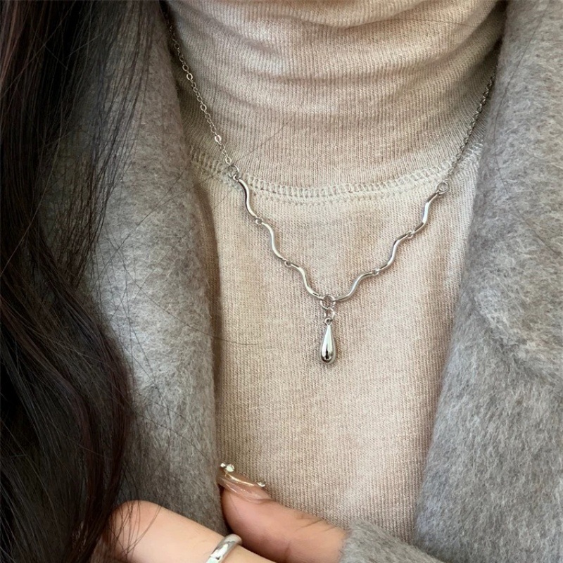 シンプルな銀色の波の水滴のネックレスの女性のフランス式のシンプルで高級感があります。