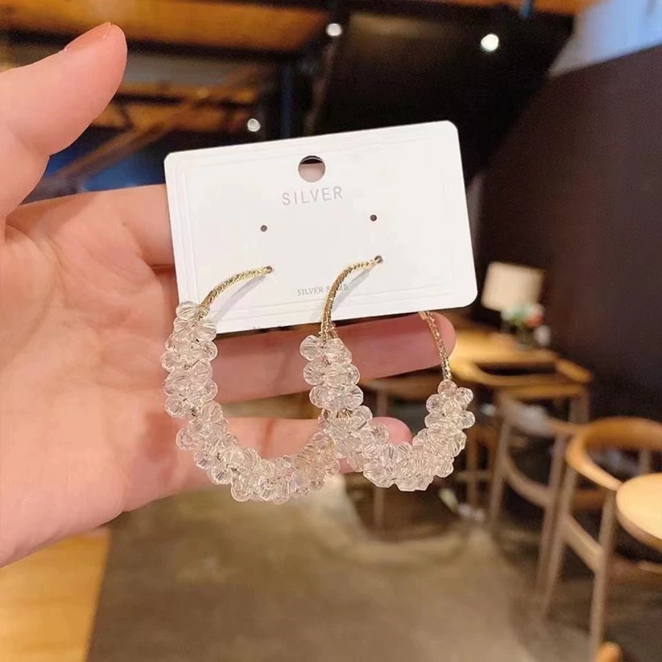 甘い超仙水晶は大きな円のイヤリングを巻いています。