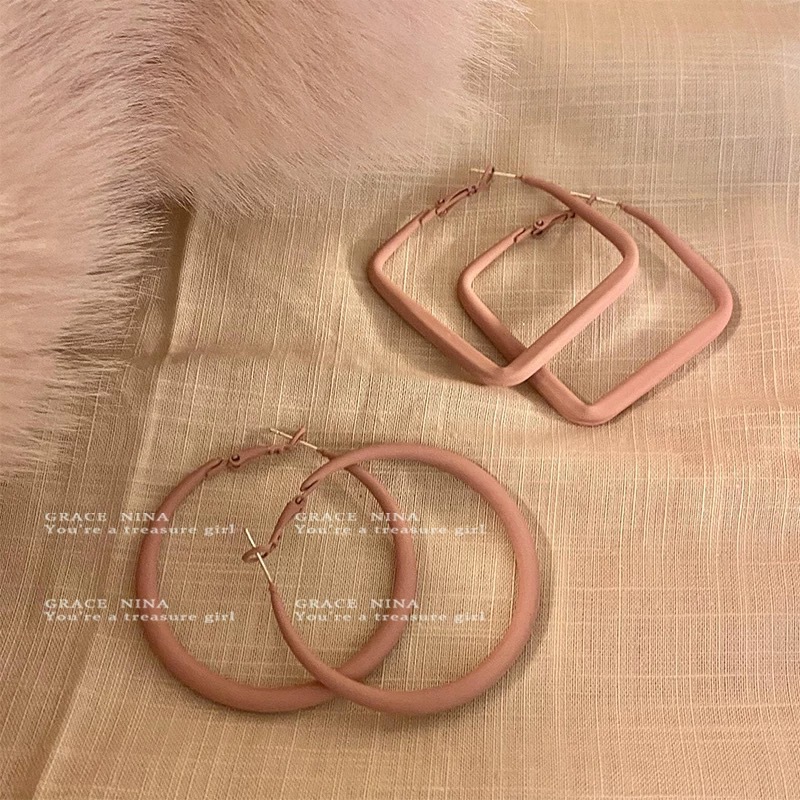 逃げるハニー ~ ピンク系幾何学的な四角いイヤリング女性秋冬2025年の新型潮insかわいいピアス