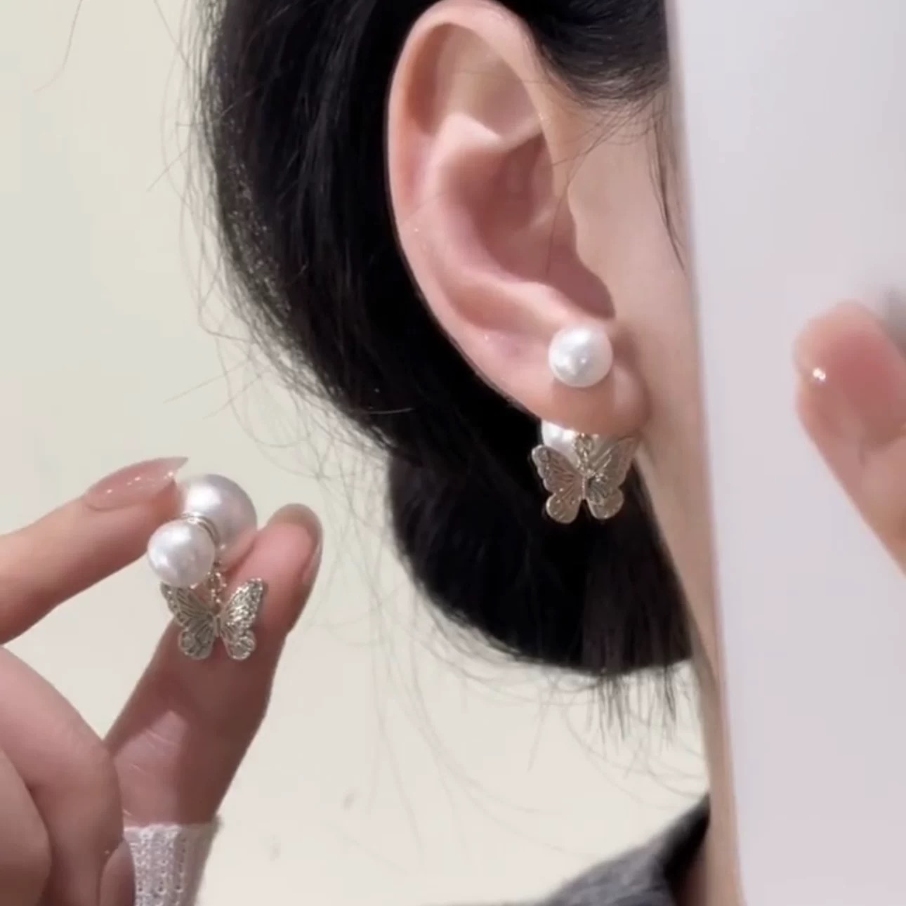 気質蝶真珠ピアス女性大衆デザイン感s925銀針イヤリング女性2025新高級感