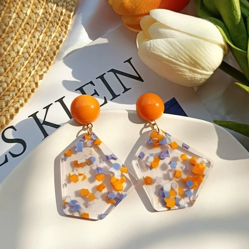 夏のオレンジ色の透明感の幾何学のアクリルのイヤリングの不規則な砕花の小さい清新なイヤリングのイヤリングのイヤリングのイヤリングの女性