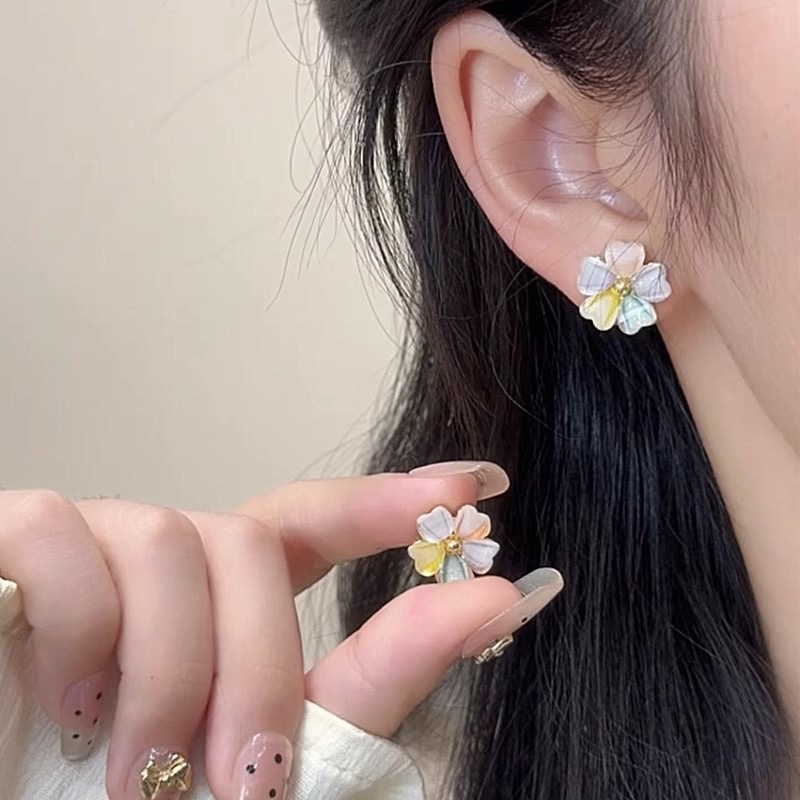 甘いカラーの花のイヤリング2025新型の爆発的なイヤリングの女性の小さい大衆のデザイン感の高級な軽豪華な気質の耳飾り