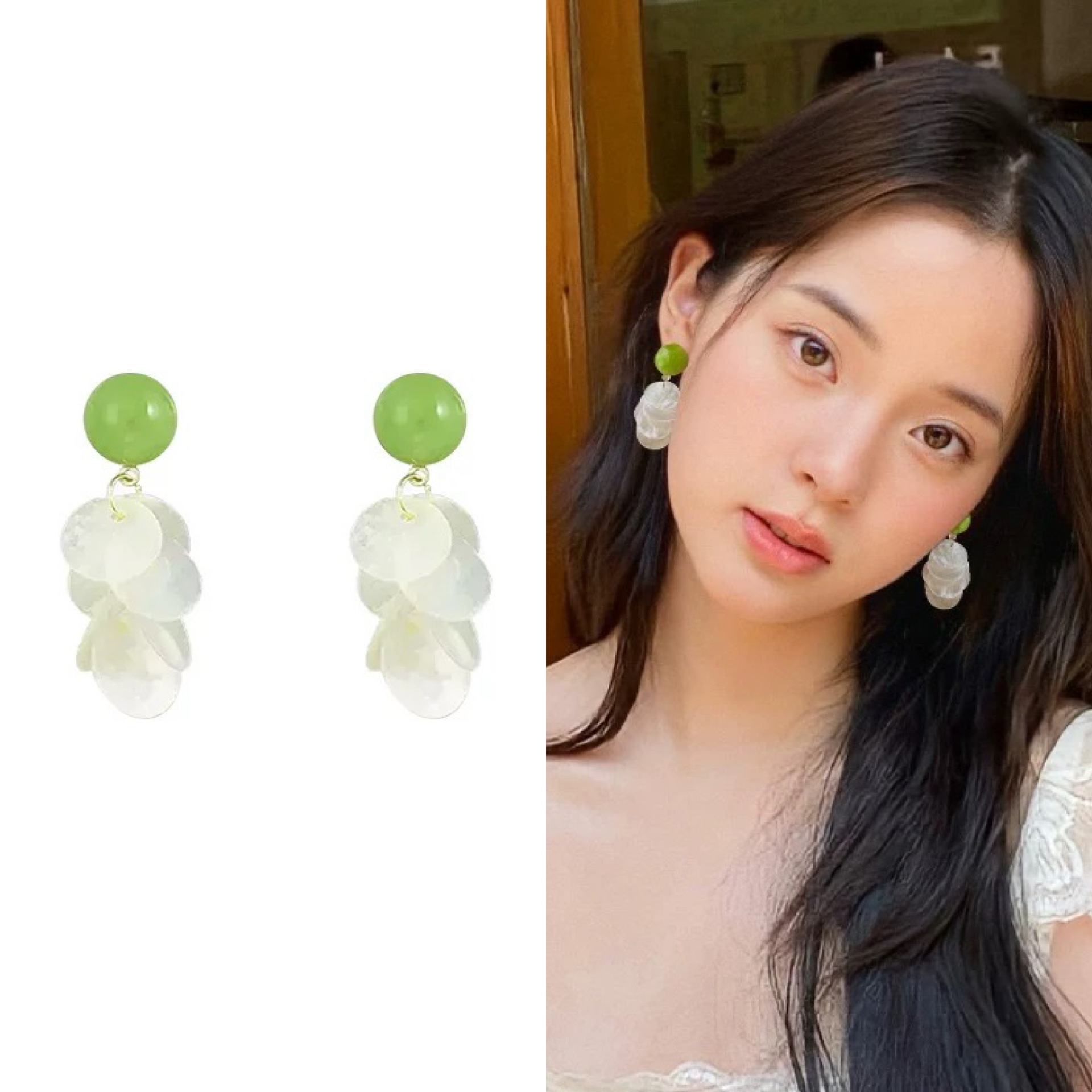 森系グリーン気質貝殻ピアス女性イヤリング小衆デザイン感イヤリング誇張個性独特高級耳飾り