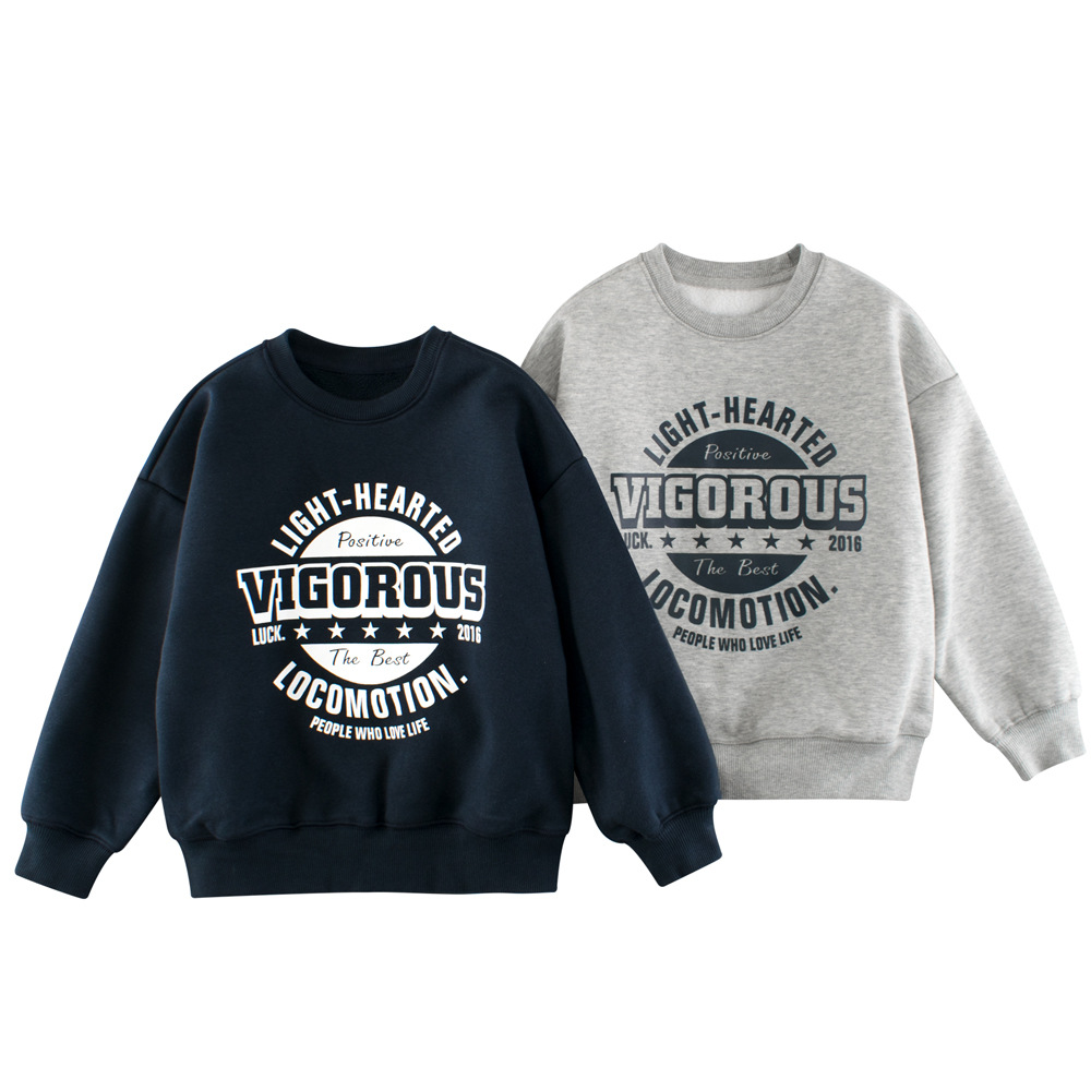 GRrr韓国版子供服子供プリントパーカー2025春新作男の子女の子ベルベットプルオーバー丸襟シャツ