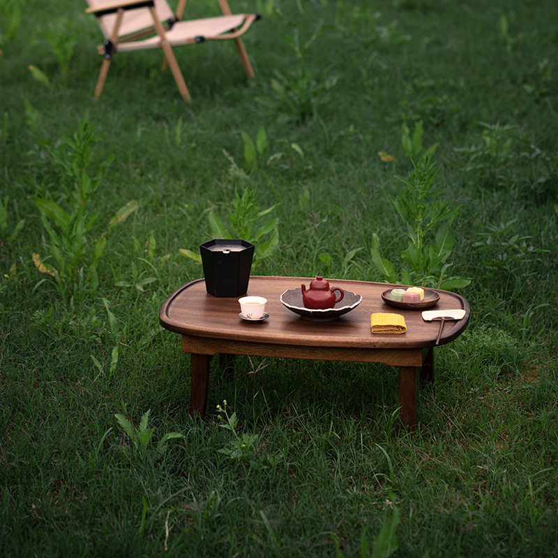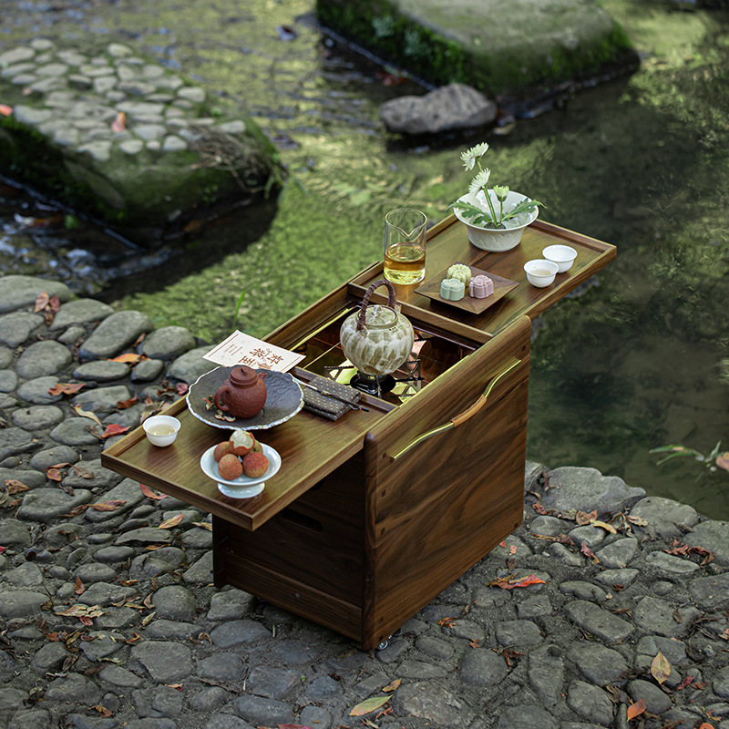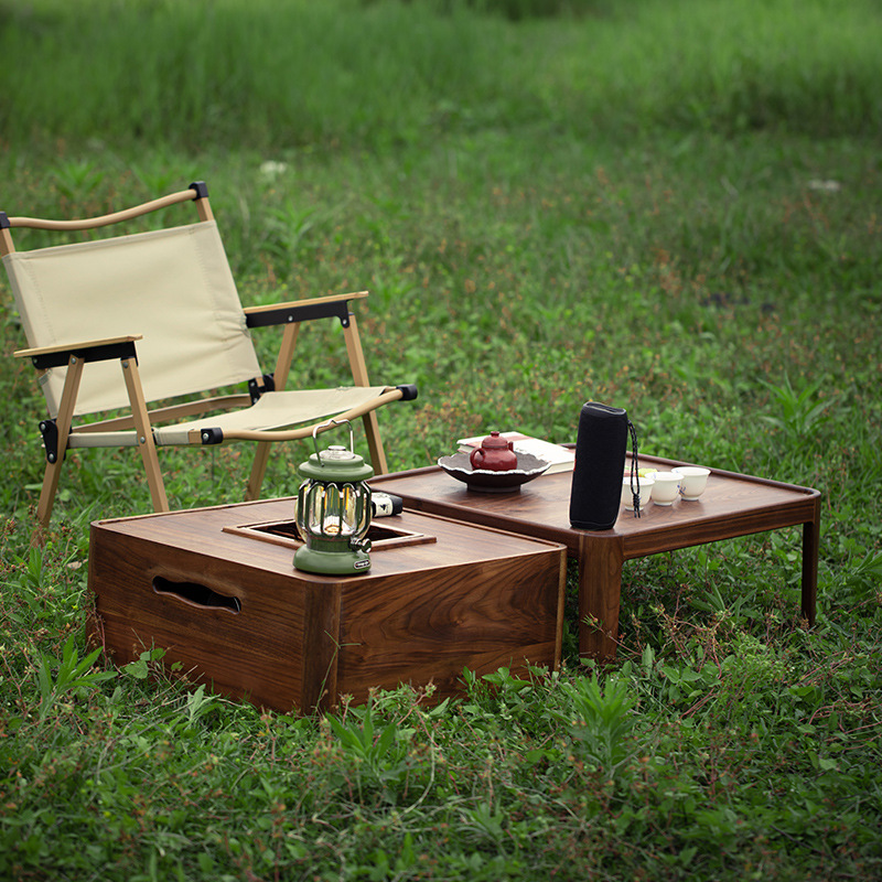 実木屋外バーベキューキャンプカード式茶台収納棚北米胡桃木火鉢囲炉野外煮茶炉テーブル