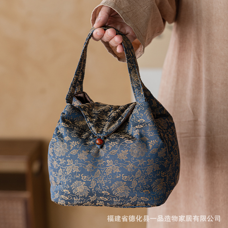 レトロ織錦茶器収納布バッグ大容量厚手手提げ袋携帯旅行品茗杯収納袋保護