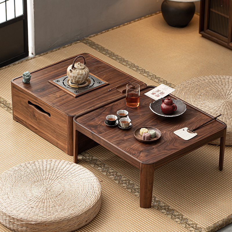 新中国式北米胡桃木炭焼囲炉茶卓家庭用畳茶室収納棚火鉢茶台