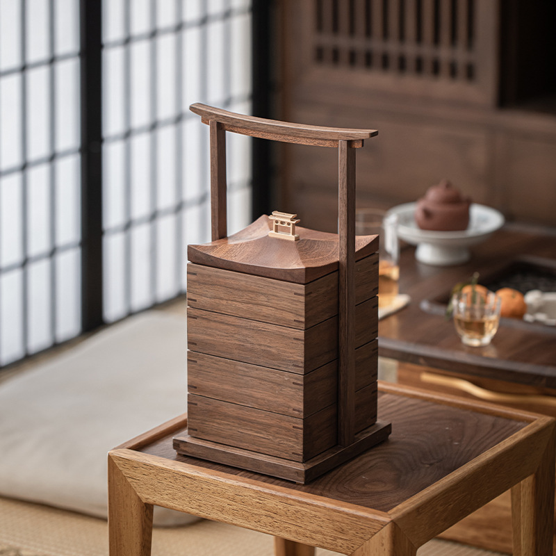 北米胡桃木茶室デスクトップ防塵茶点ドライフルーツ収納ケース屋外ポータブル多層手提げケース