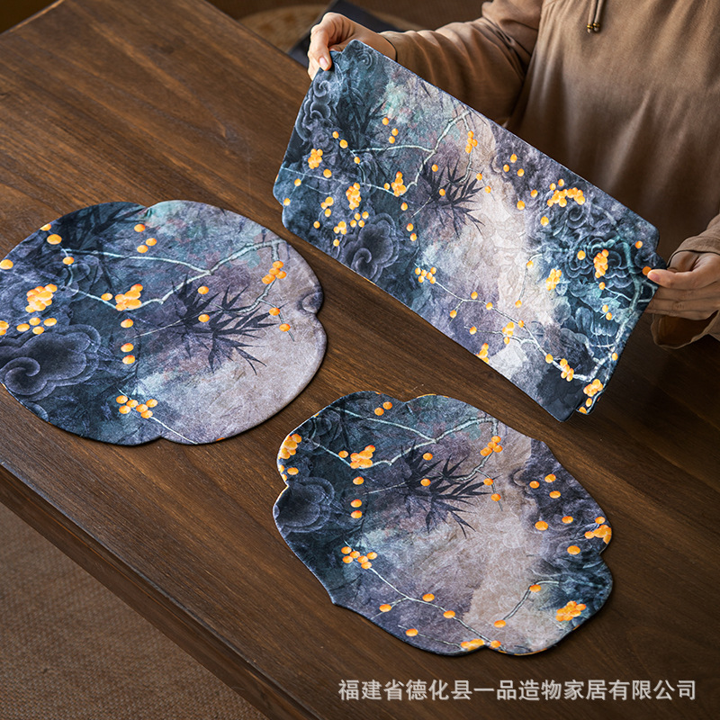 中国式織錦プリント両面防水乾泡小茶席シンプル茶室布芸禅意テーブル旗断熱茶盤マット