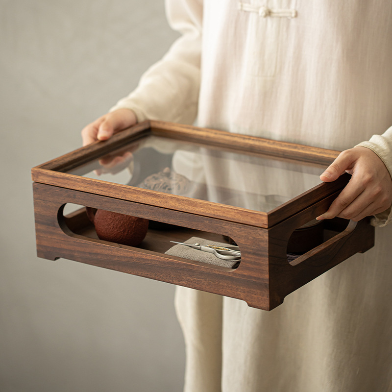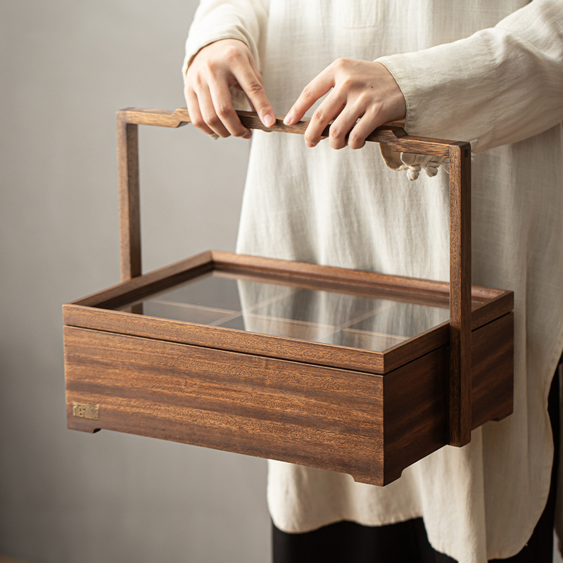 胡桃木防塵透明開窓ガラス棚茶器収納箱展示箱アクセサリー茶何個収納箱