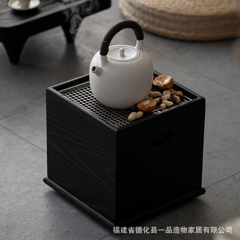 囲炉煮茶火鉢炭素炉黒胡桃木禅意新中国式茶道家庭用ベランダ畳湯茶炉