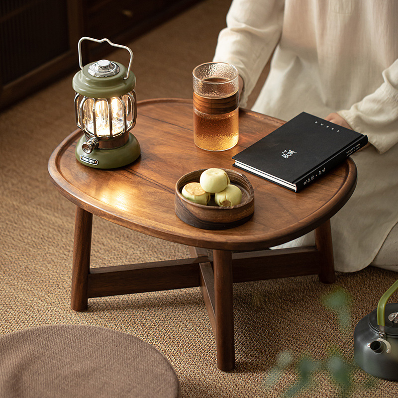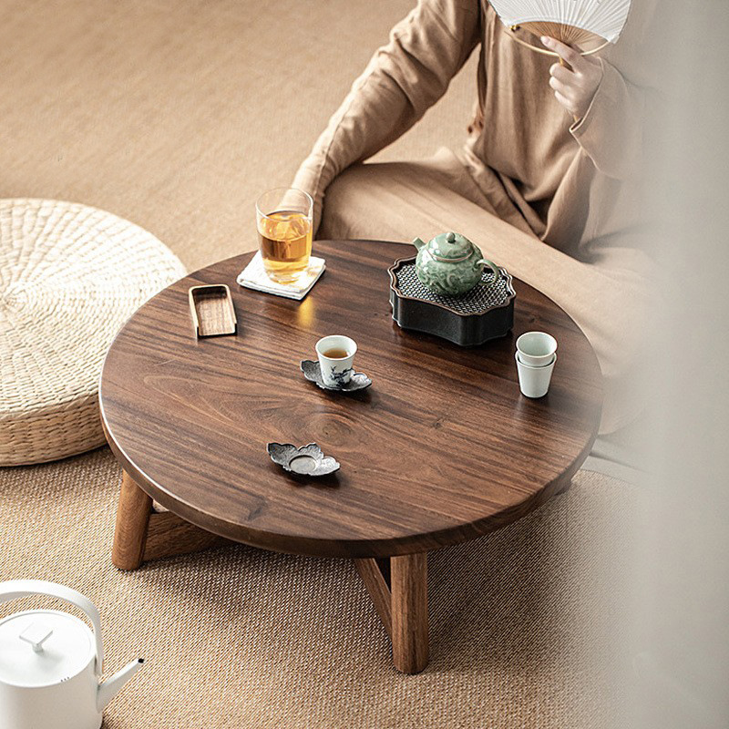 軽くて豪華な日本式の黒い胡桃の実木の窓のお茶のいくつかの小さいテーブルは簡単で現代の円形の畳のオンドルのいくつかの低い机です。