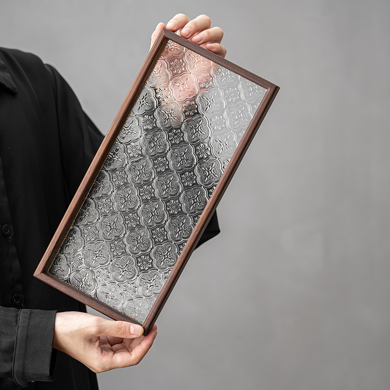 胡桃の木のトレーの長方形の復古のカイドウの花のガラスのお菓子の皿は湯飲みのコップの収納皿の乾いた泡の皿を置きます。