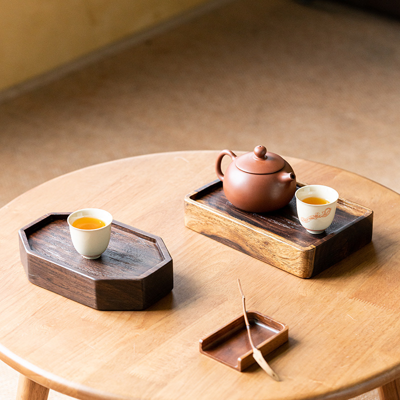 黒胡桃木茶盤禅意シングル家庭用手作りトレー実木質小型日本式乾燥泡台茶道具茶海