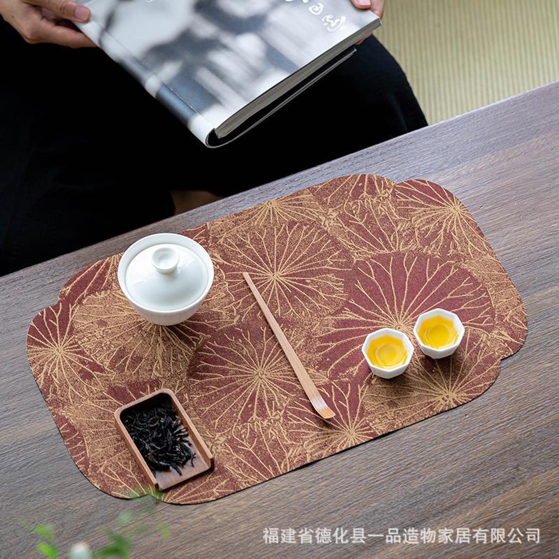 一品の創造物は錦のハスの葉の茶席のテーブルクロスのテーブルの旗の茶の敷き物のコースターの日本式の防水の乾いた泡の茶巾を織って簡単に主人を作ります。