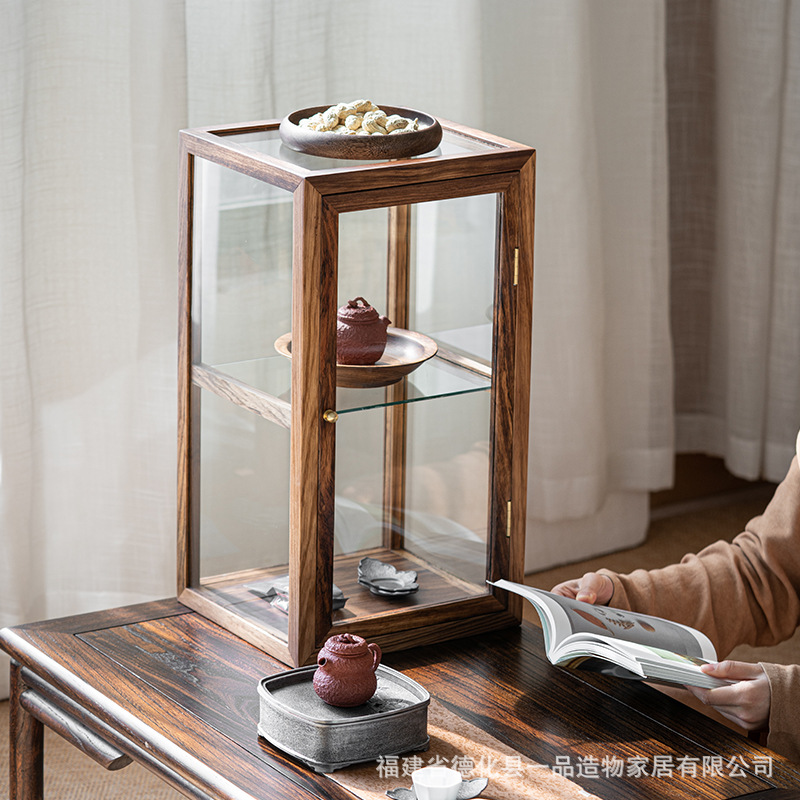 一品創造物胡桃木茶道具カップ収納ケースティーポット茶部品セラミック防塵透明ガラス展示ケース