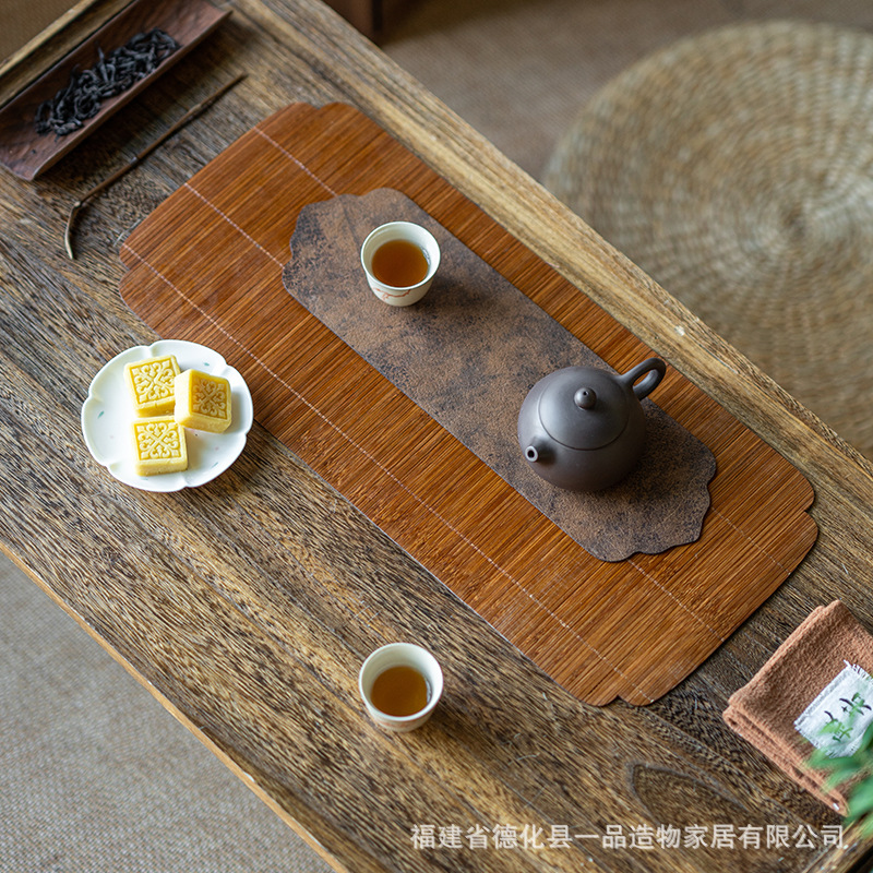 竹編みテーブル旗大漆主人席中国式レトロ茶席防水茶台マット高級布芸茶器部品