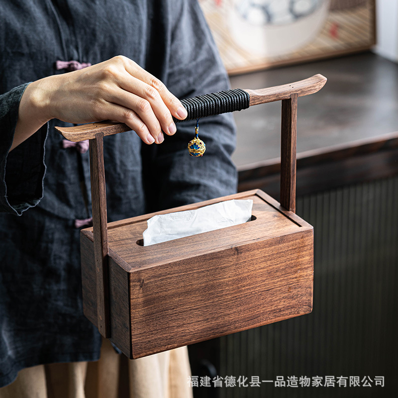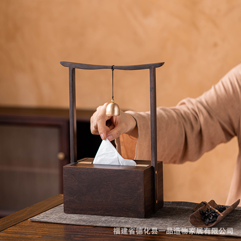 一品創造物黒檀実木ティッシュケースシンプル禅意新中国式茶卓レトロ創意家庭装飾置物