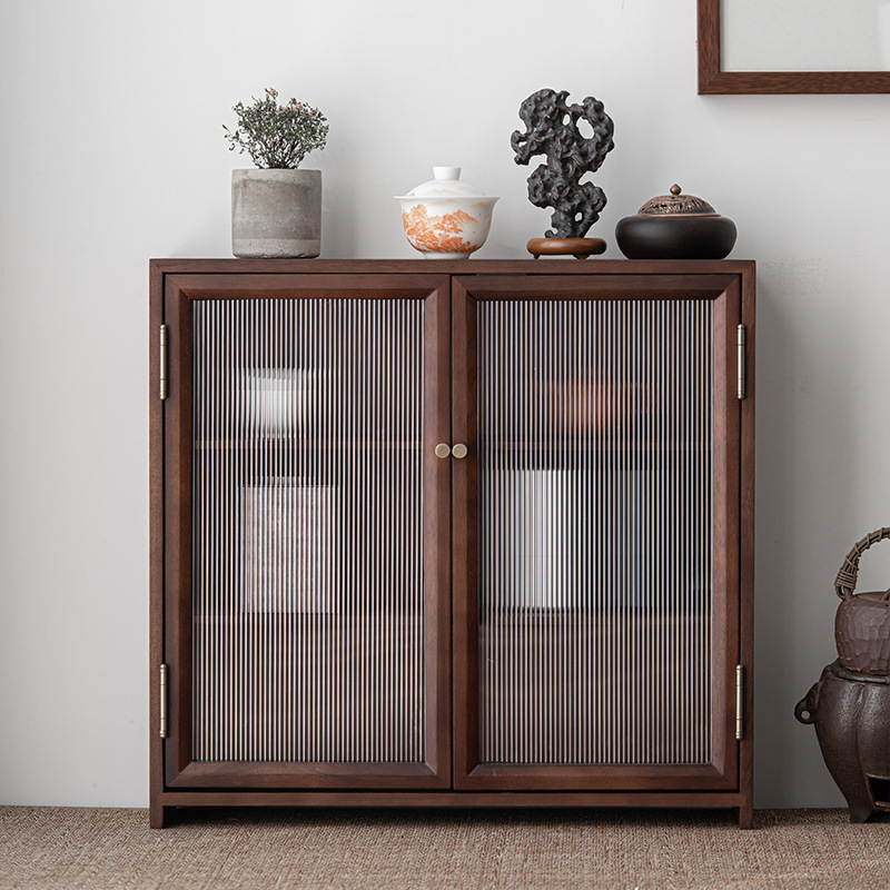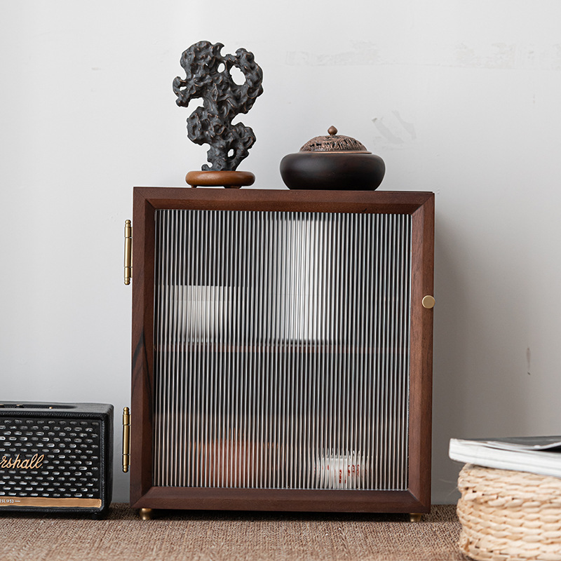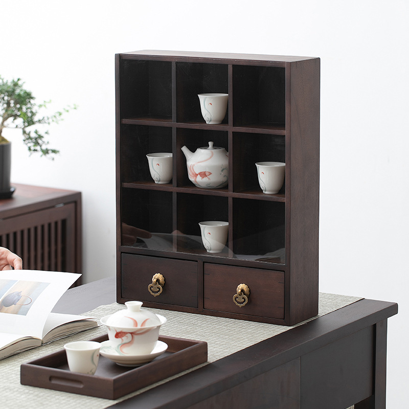 黒胡桃木収納棚デスクトップロッカー茶道具骨董品棚ガラスシングルドア二重小戸棚卸売り