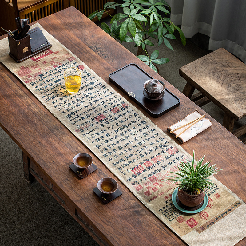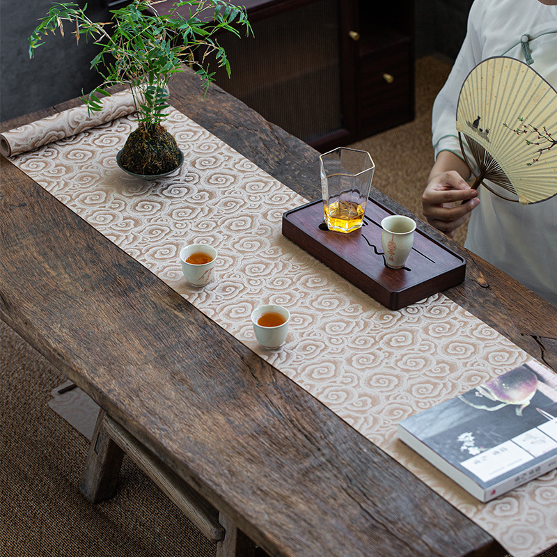 日本式山水茶席禅意防水綿麻布テーブル旗新中国式茶台茶布芸茶テーブルマット部品卸売り