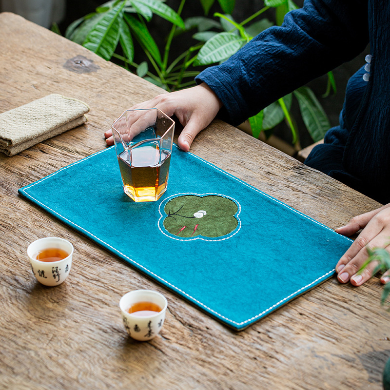 手缝い茶席手描き中国式绵麻茶マットテーブル旗干泡茶巾茶皿テーブルマットアクセサリー