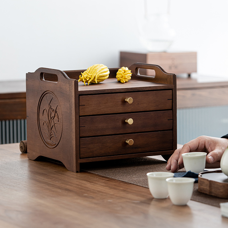 胡桃木プーアル茶箱多層実木茶餅箱引き出し式家庭用高級白茶餅収納箱保存茶箱