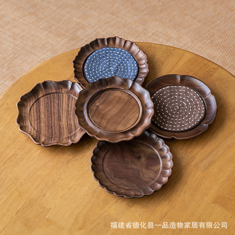 一品創造物北米黒胡桃木茶トレーポット承茶具乾泡台小茶皿家庭用茶点皿果物皿