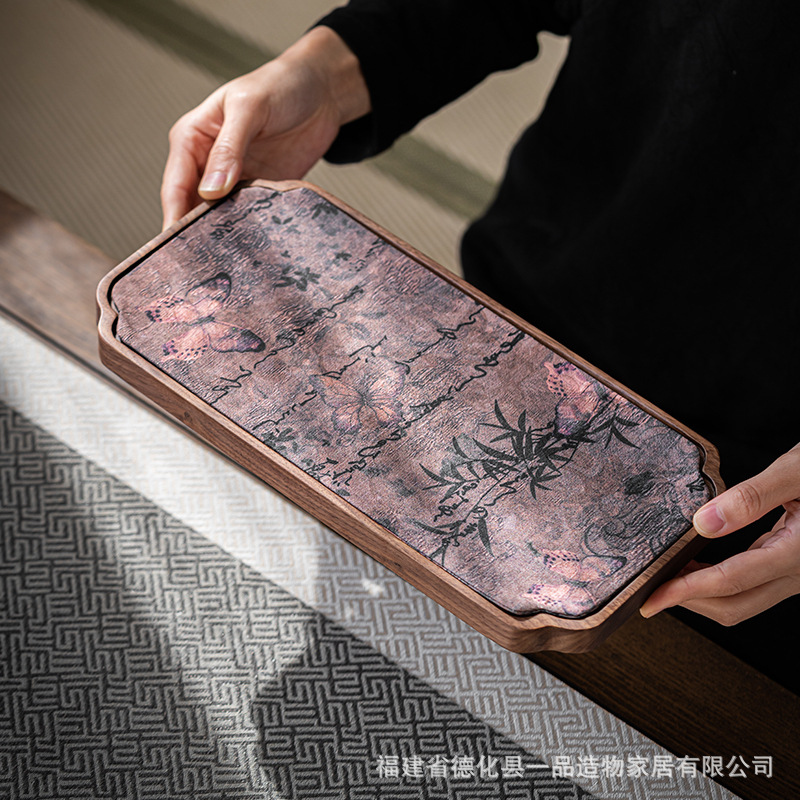 一品創造物胡桃木茶トレー乾泡皿小茶台新中国式長方形茶席テーブル旗小泡茶皿