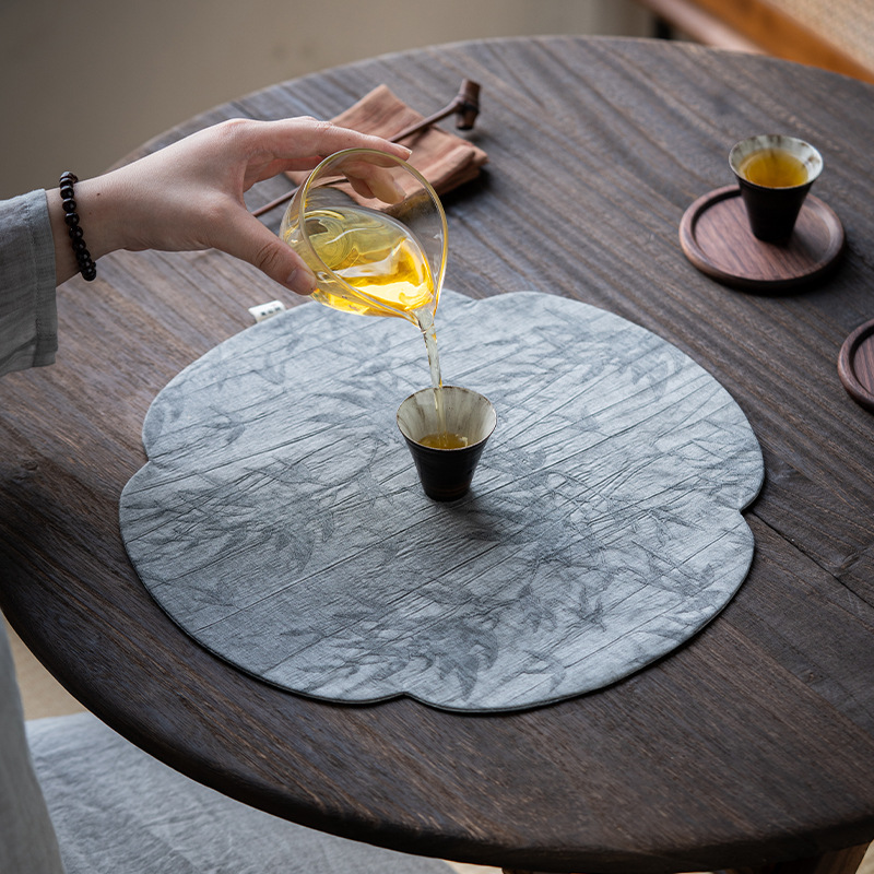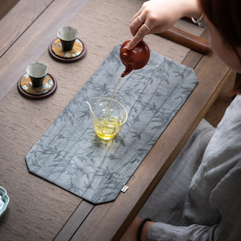 四葉草竹影茶席新中国式禅意乾泡マット茶卓マット断熱茶マットテーブル旗茶道部品