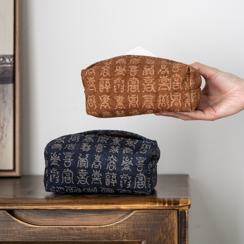 新中国式キャンバス染めティッシュ収納ケースティッシュ袋家庭用デスクトップ引き出し箱民宿茶室ティッシュカバー