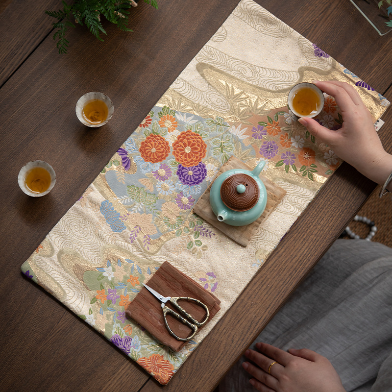 日本式西陣織金藍織錦織茶畳麻布禅意布芸テーブル旗茶布茶卓乾泡茶マット