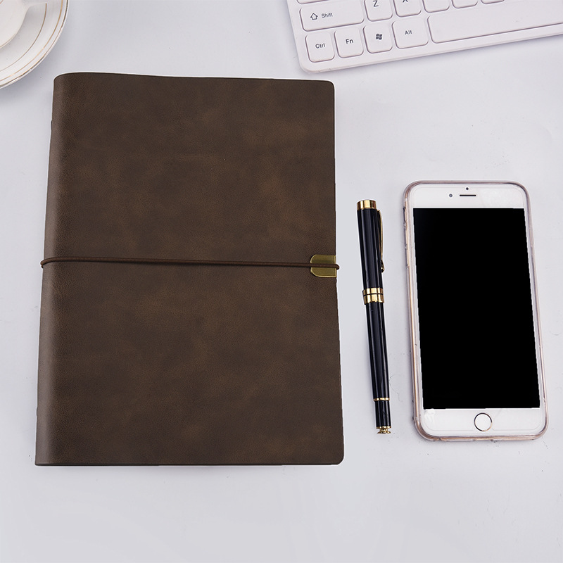 ノートの卸売りのビジネスの事務の柔らかい皮の手帳のa5は簡単に学生の日記帳の創意を決めます。