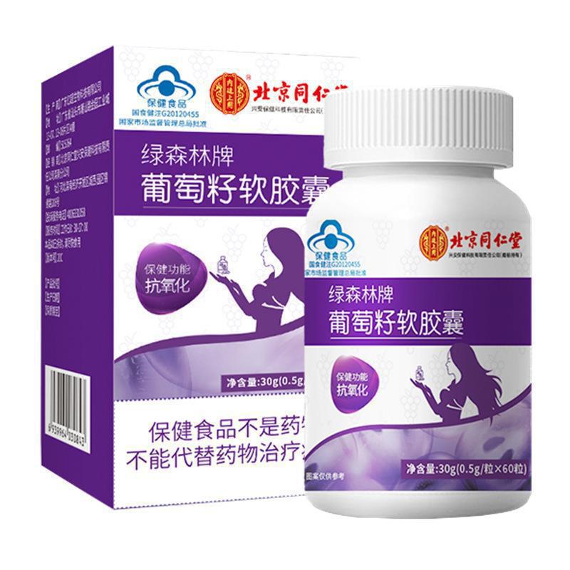 北京同仁堂緑森林ブランドブドウ種ソフトカプセルブドウ種エキスエキスソフトカプセル補充花青