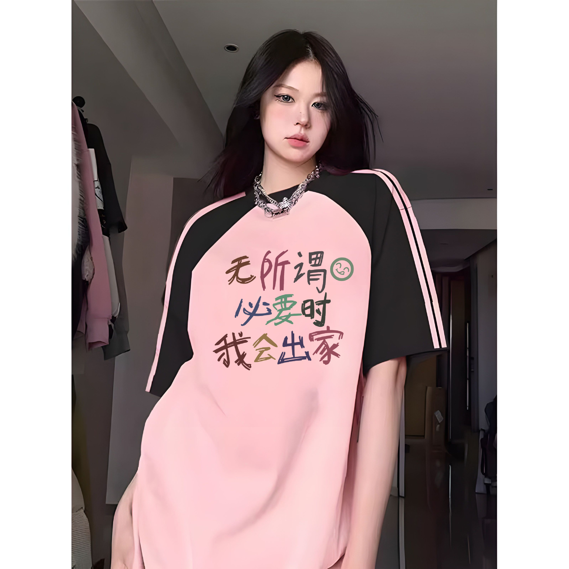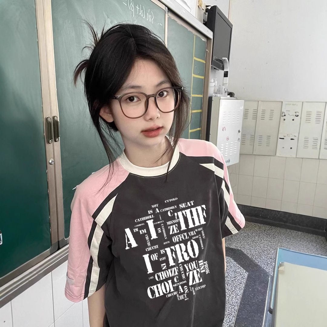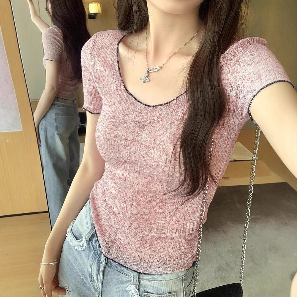 6577 # 衝突色鎖辺薄い雪花麻正肩修身半袖tシャツ女性夏新韓系美しい上着