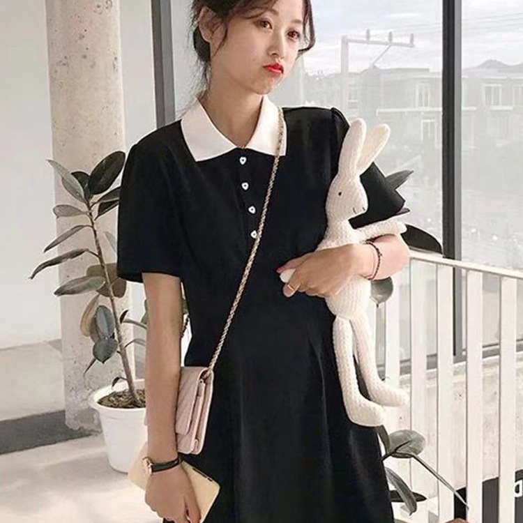 Poloスカートのワンピースの女性の夏の小さいスカートは腰を収めて少し太っています。