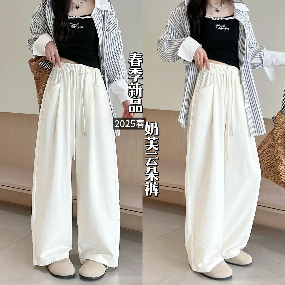 【浙江の仕事】怠惰な風の乳芙の雲のズボンの女性の春の夏の2025の新型のゆったりしているレジャーはやせている足を現します。
