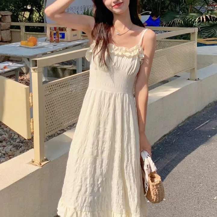 新しい中国式のストラップワンピースの女性の夏の2025新型の甘いフランス式は腰を収めてやせているデザイン感が現れます。
